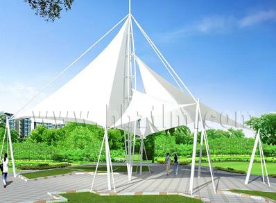 膜材采用PVDF国产或者进口建筑膜材、PTFE玻璃纤维建筑膜材、ETFE透明的永久性建筑膜材;自动放样裁剪,高频焊接,拉伸效果超强,曲线成型可千变万化;膜材质保一般可达15-20年。