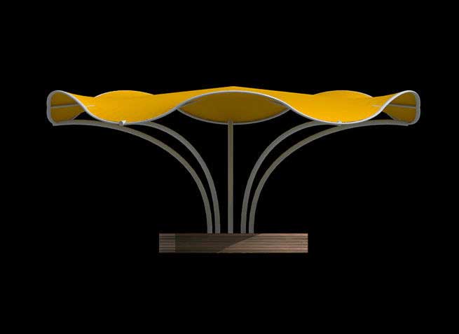 该项目为永久式景观遮阳伞,其结构为内撑式冒顶膜...